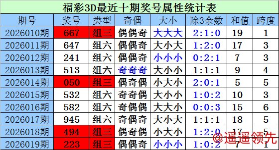 财迷福彩3D第2026020期综合推荐: