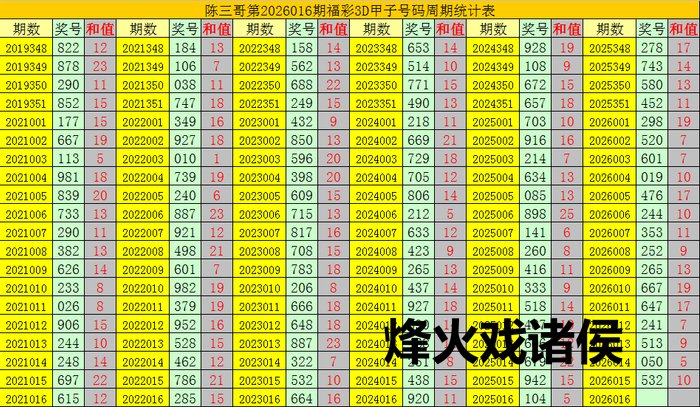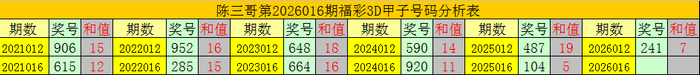 陈三哥3D第2026016期甲子号分析: